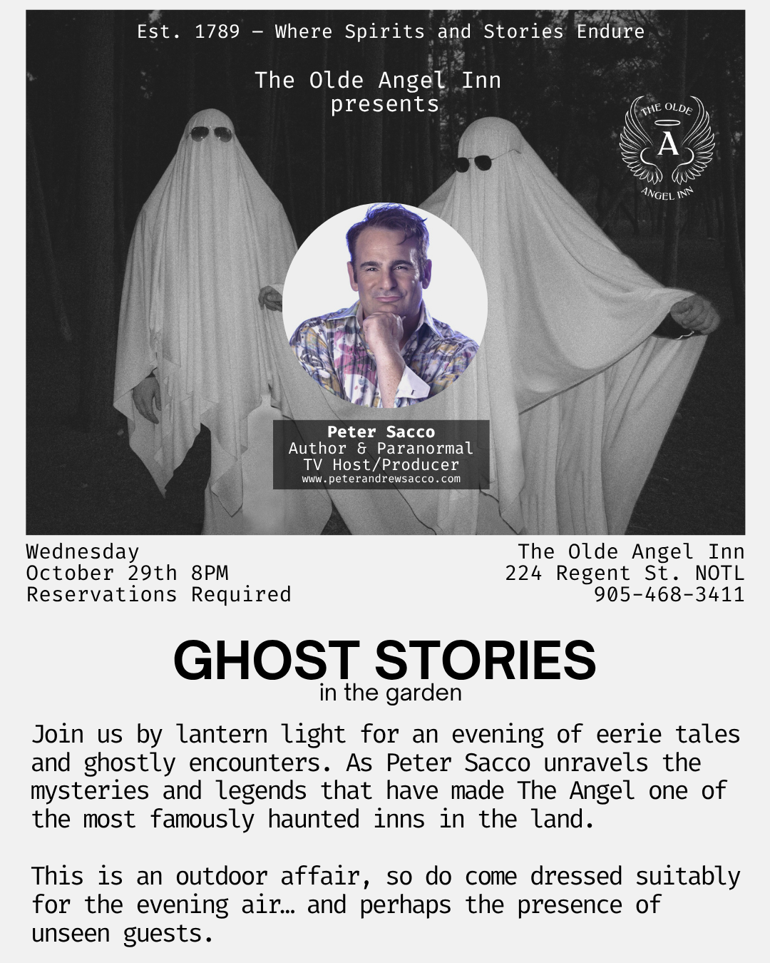 Come and enjoy our extensive menu filled with authentic British fare and draft ales. Enjoy live music and entertainment, in a cozy pub setting. Looking to plan an overnight getaway to Niagara-on-the-Lake? We offer five rooms located above our lively pub, plus two cottages located within the grounds of our quaint beer garden. Who knows, you may even run into our resident ghost, Captain Colin Swayze. Our newly renovate English Beer Garden is the perfect addition to The Olde Angel Inn. Pet & family friendly, the patio will provide the perfect atmosphere for your outdoor dining experience!